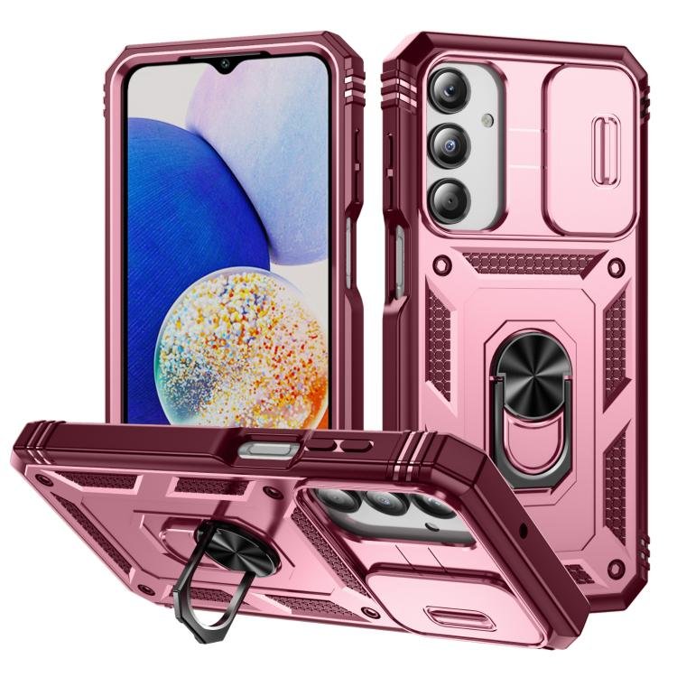 For Samsung Galaxy A26 5G / A17 5G / A16 Sliding Camshield Phone Case with Holder Pink+Rose Red